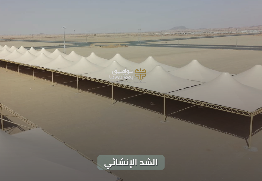 مظلات بتصميم هندسي معاصر تعتمد على تقنية الشد الإنشائي، حيث يتم استخدام أقمشة عالية الجودة تُشد على هياكل معدنية قوية لتشكل تصاميم معمارية فريدة، تمتاز بخفة وزنها وإمكانية تغطية مساحات كبيرة بأقل عدد من الأعمدة، ما يمنح المكان اتساعاً وأناقة استثنائية، تُعتبر الحل المثالي للملاعب، الحدائق، الساحات العامة، مواقف السيارات، والمشروعات الكبرى، فهي تجمع بين المتانة العملية والجاذبية البصرية التي تضيف قيمة معمارية مميزة، وتعكس هذه المظلات رؤية حديثة تجمع بين الإبداع الهندسي والوظيفة العملية لتمنح أي مساحة طابعاً معاصراً يلفت الأنظار، كما يمكن تصميمها بأشكال وألوان متنوعة تتناسب مع هوية المشروع واحتياجاته الخاصة.