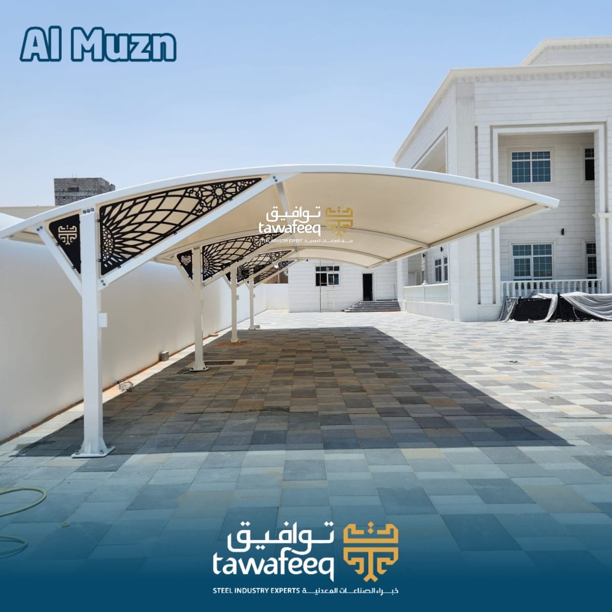 بتصميمها العصري وأعمدتها المربعة المتينة، تمنح مظلة المُزن مظهراً أنيقاً يليق بالمباني الحديثة والكلاسيكية معاً، ما يميزها هو لمستها الزخرفية الخلفية التي تضيف بعداً جمالياً خاصاً، لتجعلها ليست مجرد مظلة سيارات بل عنصراً معمارياً يرفع من قيمة المكان، بفضل جودتها العالية ودقة تفاصيلها، تقدم حماية موثوقة للسيارات ضد أشعة الشمس وتقلبات الطقس، مع مظهر يعكس الذوق الرفيع والتفرد، تتوفر مظلة المُزن بخيارات متعددة من الألوان والتشطيبات لتتناسب مع مختلف البيئات المعمارية، لأنها تجمع بين الجمال والوظيفة، فهي استثمار طويل الأمد يضيف قيمة وأناقة لمساحتك الخارجية، ويجعل كل تفاصيلها حديثاً عن الفخامة.